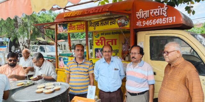 मुरादाबाद । सर्व प्रयास सीता रसोई ट्रस्ट द्वारा सीता रसोई के माध्यम से रविवार को दिल्ली रोड पर साईं अस्पताल के सामने सीता रसोई भोजन रथ पर निःशुल्क भोजन वितरण किया गया जिसमें लगभग 551 लोगों को कढ़ी-चावल का वितरण किया गया।