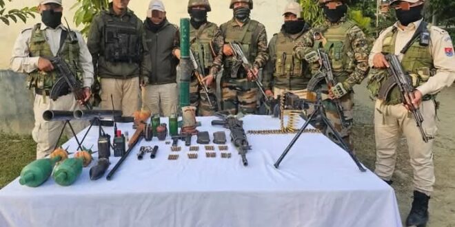 इंफाल । मणिपुर में भारी मात्रा में हथियार और विस्फोटकों की बरामदगी हुई है। पुलिस ने शुक्रवार को बताया कि हिल और वैली जिलों के सीमावर्ती और संवेदनशील क्षेत्रों में सुरक्षा बलों द्वारा तलाशी अभियान अभियान चलाया गया। इस दौरान इंफाल ईस्ट जिले के नुंगब्राम गांव और लैरोक वैपई गांव से भारी मात्रा में हथियार और गोला-बारूद बरामद किए गए।