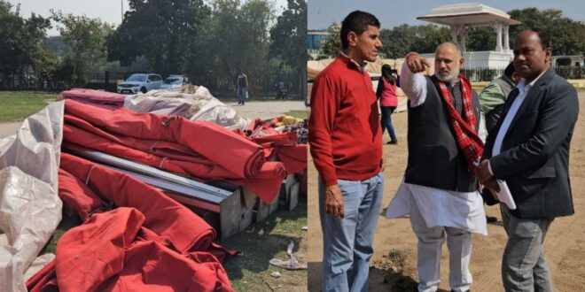 नए मुख्यमंत्री के शपथ ग्रहण समारोह को लेकर रामलीला मैदान में तैयारी की जा रही है। रामलीला मैदान टेंट लगाए जा रहे हैं। कुर्सियां, बड़े-बड़े सोफे और गद्दे यहां लाए जा रहे हैं। कारीगर समारोह को भव्य बनाने की तैयारी में जुटे हैं।