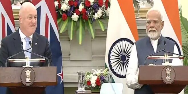 प्रधानमंत्री नरेंद्र मोदी ने कगा कि आज हमने अपने द्विपक्षीय संबंधों के विभिन्न पहलुओं पर विस्तृत चर्चा की। हमने अपनी रक्षा और सुरक्षा साझेदारी को मजबूत और संस्थागत बनाने का निर्णय लिया है। संयुक्त अभ्यास, प्रशिक्षण के साथ-साथ रक्षा उद्योग में आपसी सहयोग के लिए रोडमैप बनाया जाएगा। हमारी नौसेनाएं हिंद महासागर में समुद्री सुरक्षा के लिए संयुक्त टास्कफोर्स 150 में मिलकर काम कर रही हैं। प्रधानमंत्री मोदी और न्यूजीलैंड के प्रधानमंत्री क्रिस्टोफर लक्सन ने संयुक्त प्रेस वक्तव्य दिया।
