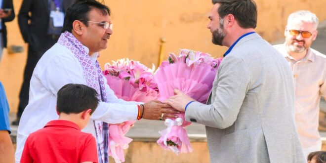 जयपुर । संयुक्त राज्य अमेरिका के उपराष्ट्रपति जेम्स डेविड वेंस की जयपुर यात्रा के दूसरे दिन आमेर किले में मुख्यमंत्री भजनलाल शर्मा ने उनका आत्मीयतापूर्वक स्वागत किया।