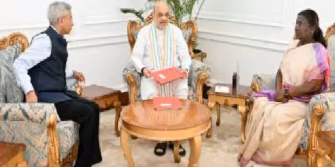 विदेश मंत्री एस जयशंकर ने गुरुवार को राष्ट्रपति द्रौपदी मुर्मू से मुलाकात की और उन्हें मंगलवार को हुए पहलगाम आतंकवादी हमले के बारे में जानकारी दी। इस दौरान अमित शाह से हाथ में लाल फाइल थी। वहीं, विदेश मंत्रालय के अधिकारियों ने जर्मनी, जापान, पोलैंड, ब्रिटेन और रूस समेत 20 से ज़्यादा देशों के राजदूतों को भी पहलगाम हमले के बारे में जानकारी दी। एक्स को ट्वीट करते हुए राष्ट्रपति भवन ने बैठक के बारे में जानकारी देते हुए लिखा, “केंद्रीय गृह और सहकारिता मंत्री श्री अमित शाह और विदेश मंत्री डॉ. एस जयशंकर ने राष्ट्रपति भवन में राष्ट्रपति द्रौपदी मुर्मू से मुलाकात की।