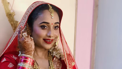 रानी चटर्जी तस्वीर में वह सुर्ख लाल जोड़े में दिखाई दे रही हैं