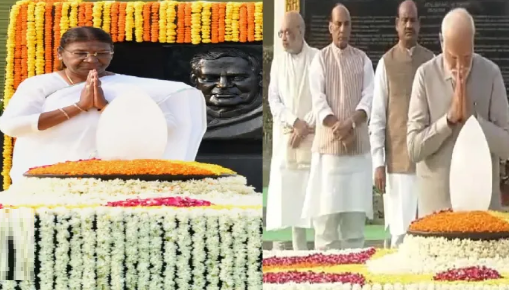 राष्ट्रपति द्रौपदी मुर्मू ने शनिवार को भारत रत्न से सम्मानित पूर्व प्रधानमंत्री अटल बिहारी वाजपेयी की पुण्यतिथि पर श्रद्धांजलि अर्पित करने के लिए उनके स्मारक ‘सदैव अटल’ का दौरा किया। प्रधानमंत्री नरेंद्र मोदी ने भी इस अवसर पर पूर्व प्रधानमंत्री और भाजपा नेता वाजपेयी को श्रद्धांजलि अर्पित की। उन्होंने राजघाट पर उनकी समाधि पर पुष्पांजलि अर्पित की और उन्हें नमन किया। इसके अलावा कई केंद्रीय मंत्री और लोकसभा अध्यक्ष ओम बिरला सहित कई अन्य गणमान्य लोग वाजपेयी को श्रद्धांजलि देने के लिए यहां उनके स्मारक ‘सदैव अटल’ पहुंचे।
