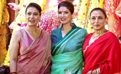 पंडाल में, रानी ने काजोल और ट्विंकल खन्ना के साथ पोज दिया, जिससे यह उत्सव और भी यादगार बन गया।