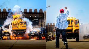 तस्वीरों में देखा जा सकता है कि कार और ट्रक में आग लगी हुई नजर आ रही है। फिल्म की शूटिंग की तस्वीरों को शेयर करते हुये रोहित शेट्टी ने लिखा ,’वर्क इन प्रोग्रेस…’ हैसटैग के साथ सिंघम अगेन लिखा हुआ है।