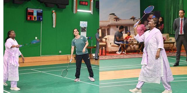 नई दिल्ली। राष्ट्रपति भवन के बैडमिंटन कोर्ट में कल राष्ट्रपति दौपदी मुर्मू ने ओलंपिक में कांस्य पदक विजेता साइना नेहवाल के साथ बैडमिंटन खेला। 66 वर्षीय मुर्मू ने कई बेहतरीन शॉट लगाए।